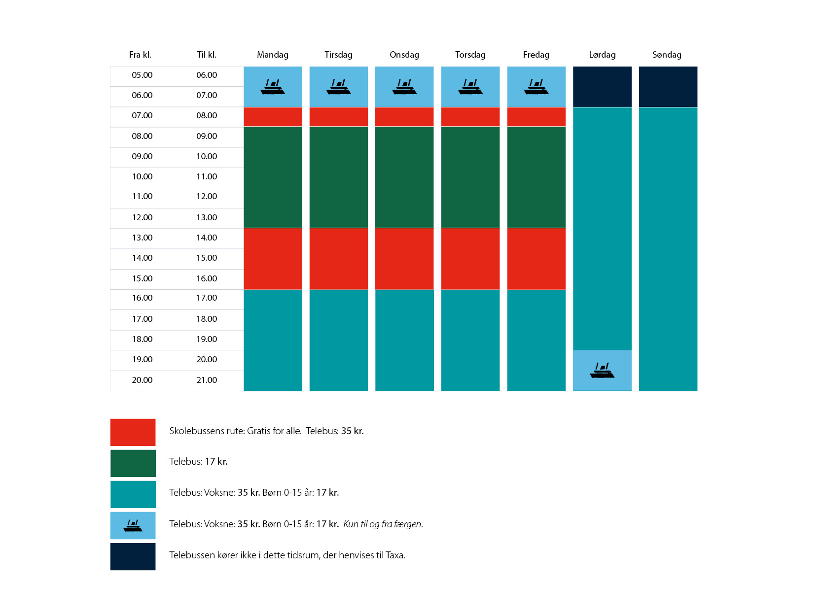 Alt håndtering af el-cykel og af-/pålæsning på telebussen, er på eget ansvar. - Bagage 17 kr. udover alm. kuffert/trolley. Oplyses ved bestilling